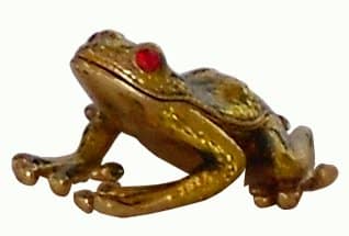 What a gorgeous little frog! You’ll love his vibrant florescent green color and, the sparkly green Austrian crystals on each toe. His eyes are red crystal, and the belly is gold plated. The top of the body opens on a hinge with a magnetic clasp at the front, to reveal a special trinket box for your finest treasures. Packaged in a gold satin-lined gift box.