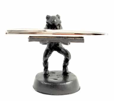 Here’s a place to hold your pen, courtesy of our little froggy, who dutifully presents the proper sized holder.