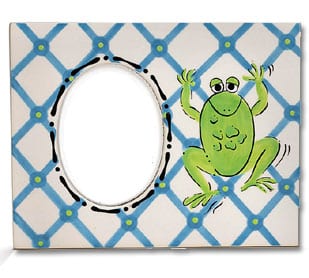 A great froggy frame for a favorite photo! .Handpainted raised ceramic frame. Insert oval holds 3.5″ x 5 ” photograph