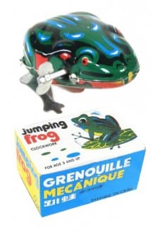 A little colorful metal froggy, with key attached to his side, will award your child (ages 3 and up) hours o f fun-filled activity, gleefully playing with his little frog and watching him jump and hop around. Don’t be surprised if mom, dad, and other members of the family will want their turn to turn the key and make froggy jump around! Fun and amusement for all!!