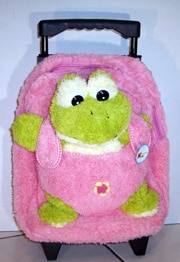 This cool froggy has his own set of wheels. This cute froggy is removable and can come with you anywhere. Let your froggy travel with you everywhere. Super soft and super cute, you will be the only person with this cool back pack.