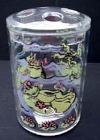 Matches the “Froggy Day” bathroom collection. Screen printed clear toothbrush holder holds up to 4 toothbrushes.